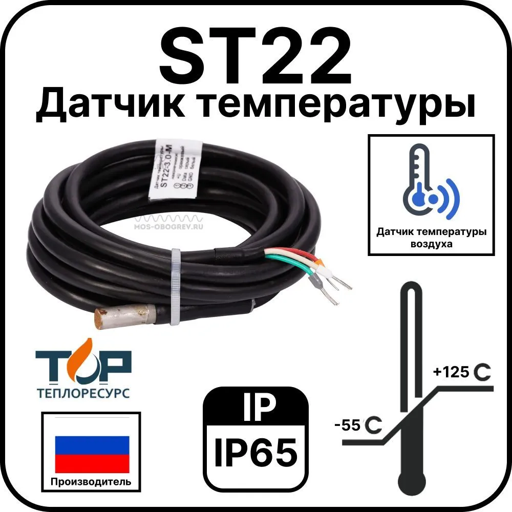 Датчик температуры ST22 от бренда ТЕПЛОРЕСУРС – это высококачественное устройство, предназначенное для измерения температуры воздуха. Он обеспечивает точные измерения и надежную работу в различных условиях эксплуатации.